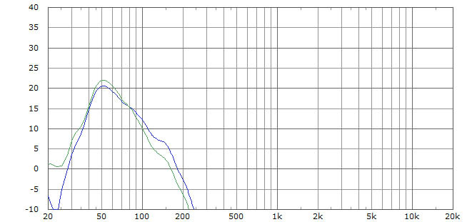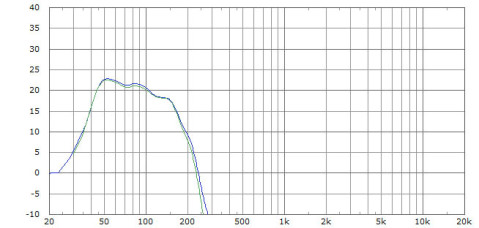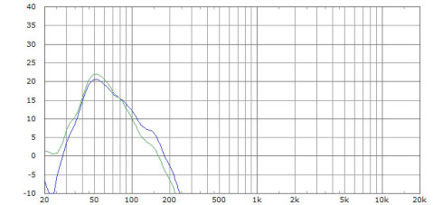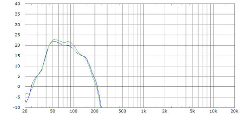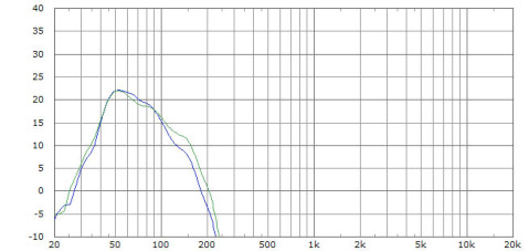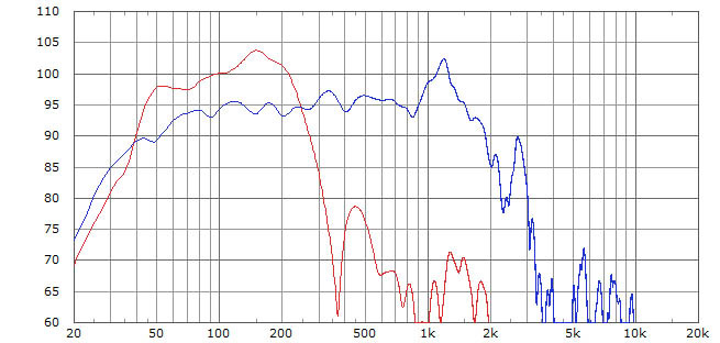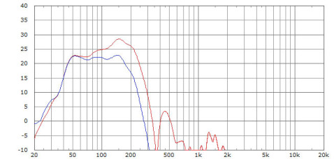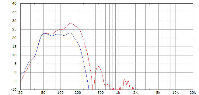 blau: 18SW115 im ventilierten 130 l-Gehäuse 34Hz-Abstimmung